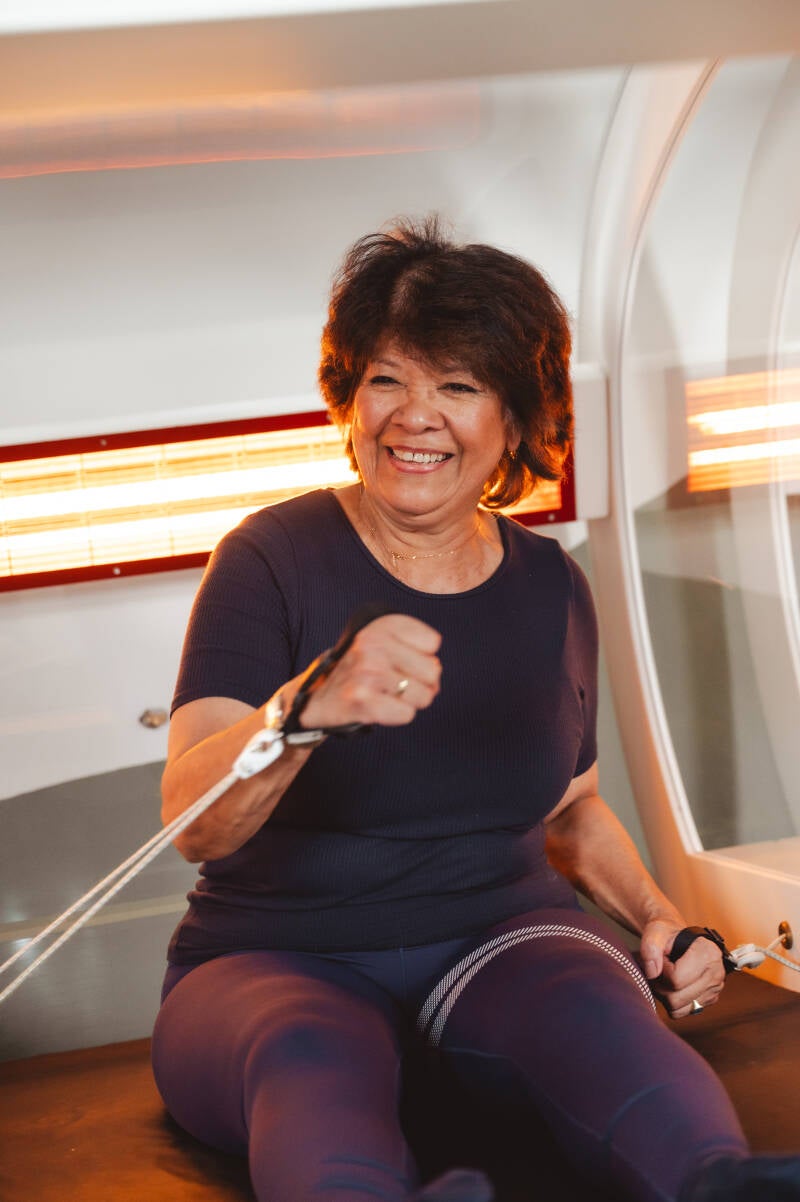 Tijdens deze oefeningen wordt er gebruik gemaakt van weerstanden op hand- en voethoogte. De oefeningen worden voornamelijk liggend uitgevoerd waardoor je rug en gewrichten worden ontlast, daarnaast bekijken we hoe we de oefeningen op jou persoonlijk kunnen afstemmen. De warmte voorkomt spierpijn en geeft een aangenaam, ontspannen gevoel. Het hoofd houdt men koel, aangezien deze buiten de cabine ligt.