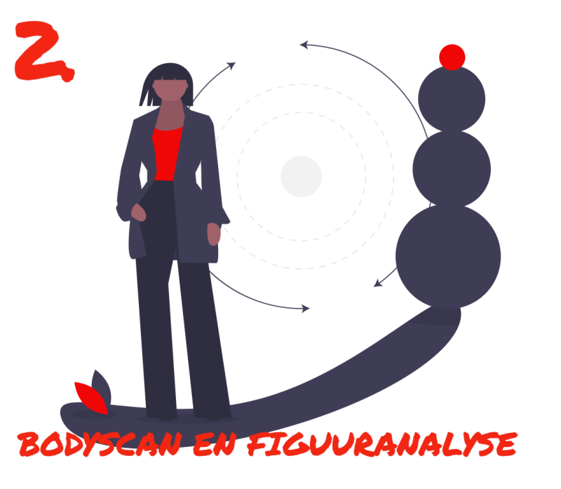Je ontvangt een zogeheten bodyscan. Dit is de bepaling van jouw gewicht, BMI, vocht- en vetmeting met daarbij een figuuranalyse.